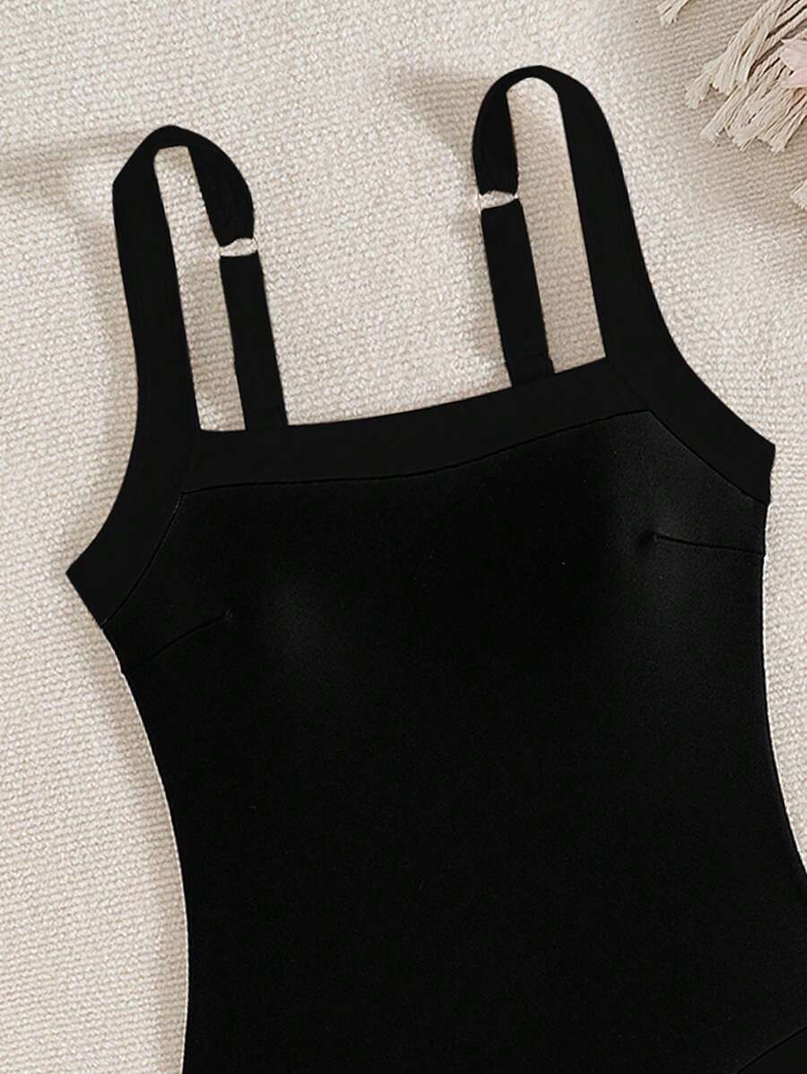レディース 水着 ワンピース ワンピース 無地 スクエアネック水着、バケーションやビーチにも