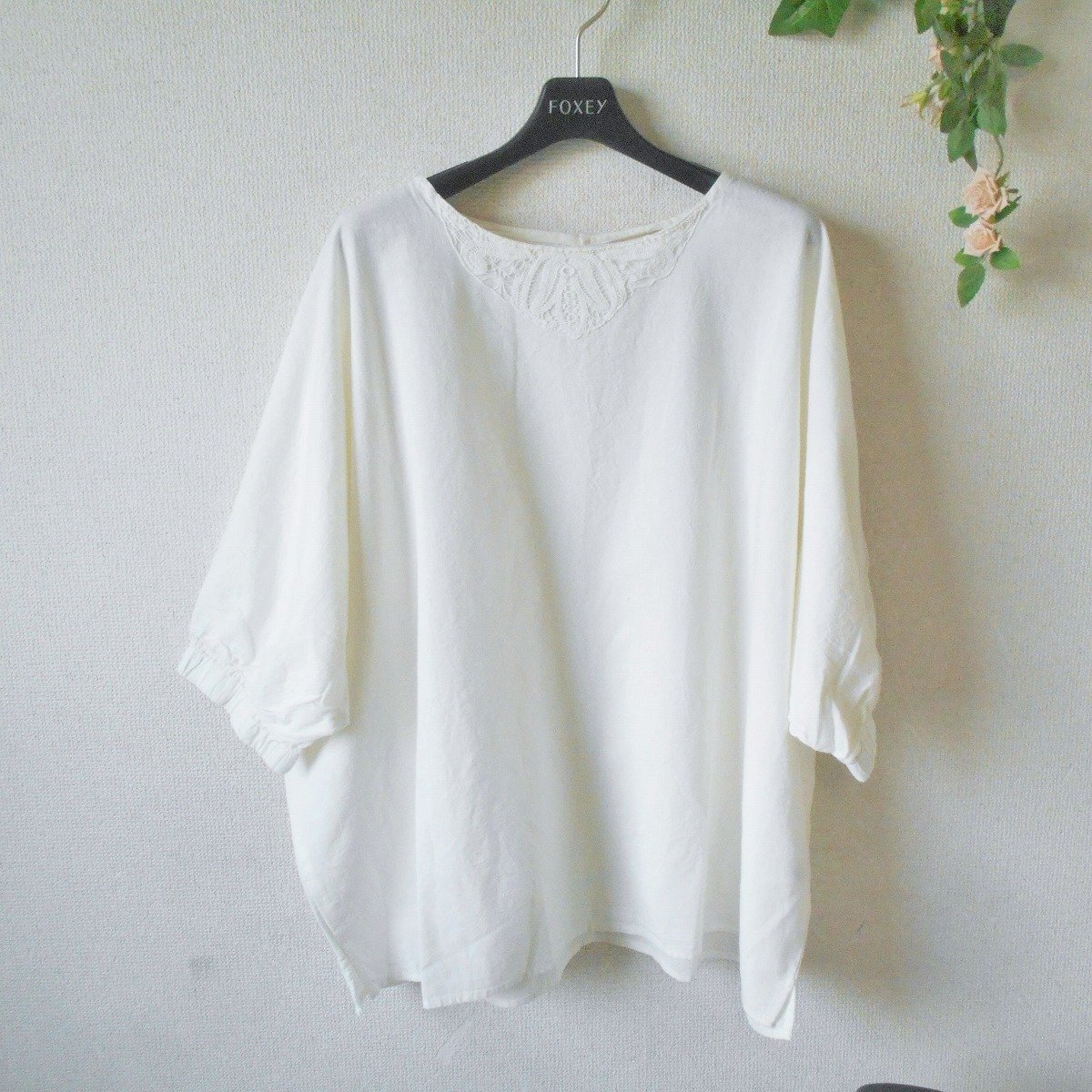 【ポイント】サマンサモスモスのレディース用ブラウスになります。お色はオフホワイト系で夏を中心に着ていただけるお品です。