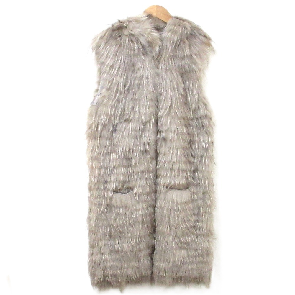 商品名:Theory セオリー NNew Knitted Fox Lylie フーディ フォクスファーロングベスト ジレ ノースリーブコート S グレージュ