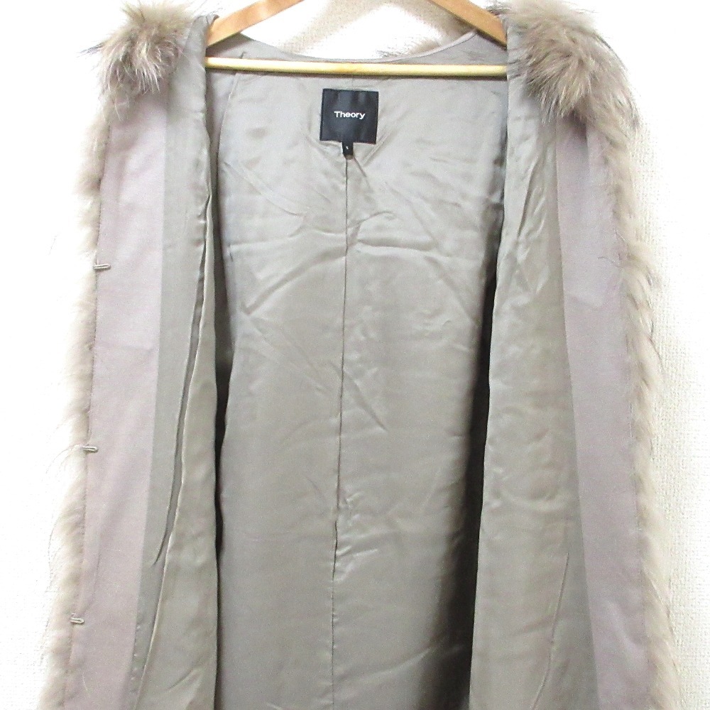 Theory セオリー NNew Knitted Fox Lylie フーディ フォクスファーロングベスト ジレ ノースリーブコート S グレージュ
