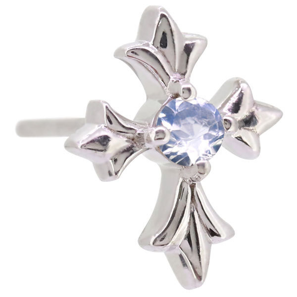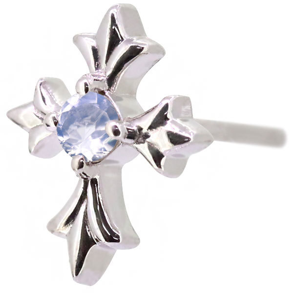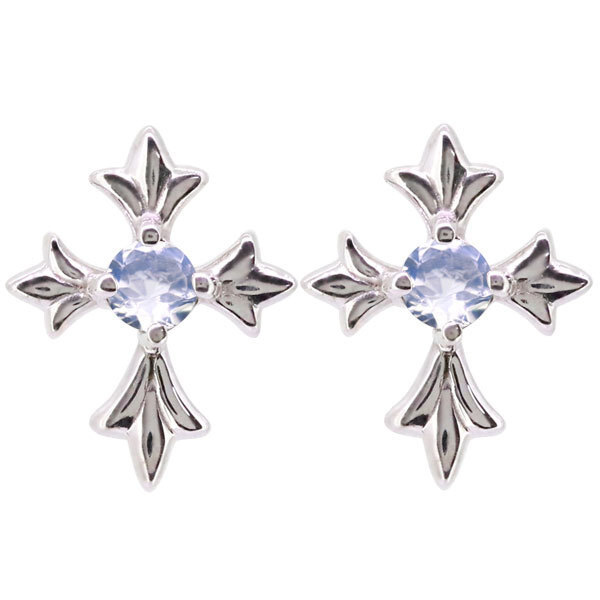 6月誕生石ロイヤルブルームーンストーンを使用したシルバー製の、クロス(十字架)モチーフメンズスタッドピアスです。