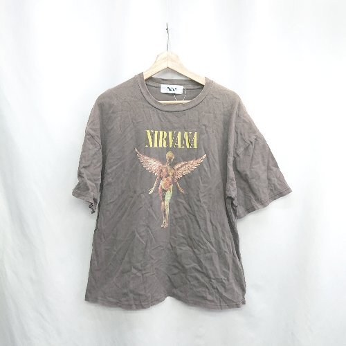 ◇ ⊂ PUBLUX NIRVANA ロゴプリント 半袖 Tシャツ サイズS グレー系 マルチカラー メンズ レディース E