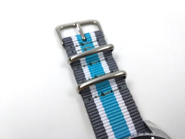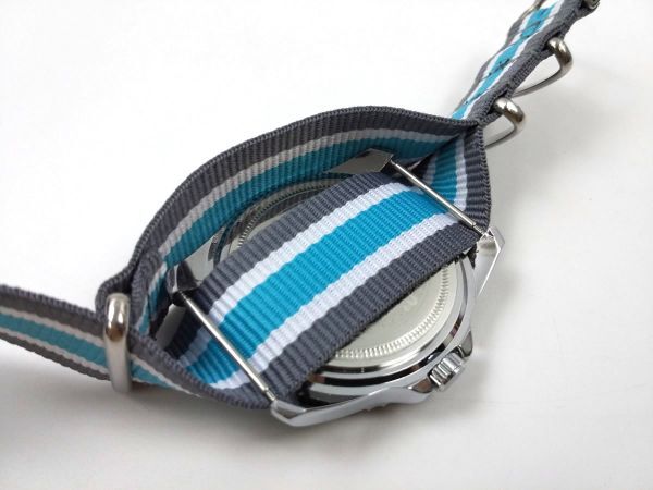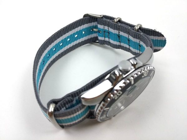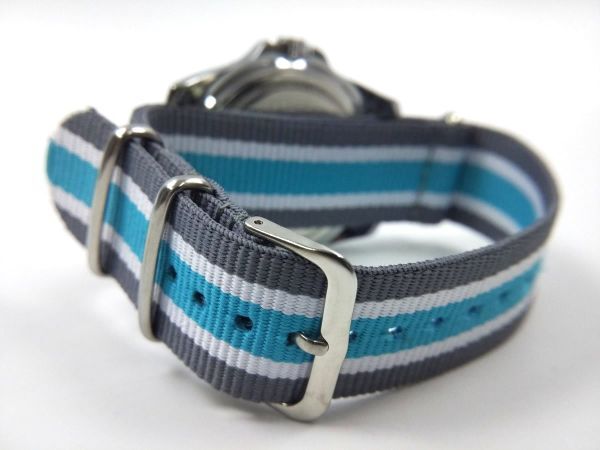 ナイロン製ミリタリーストラップ natoタイプ 布ベルト 腕時計 グレーXブルー ストライプ 22mm