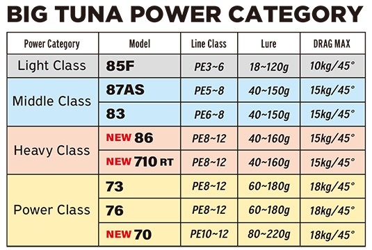 BIGTUNA87JAPANspecial同様、小さいルアーを遠くに飛ばせ、立てても折れにくい粘り強さがある事と、使用ラインの幅を持たせる事でした。具体的にはPE3号から6号。 一般的なライトツナロッドでは、ロッド破損やラインブレイクをカバーしながらのロングファイトになりがちです。乗り合いでのライトタックルでのロングファイトは同船者のチャンスを減らす事になりがちです。 このロッドはライトタックルではありません。ライン、ノットの限界強度で戦える、全く新しいコンセプトのロッドです。