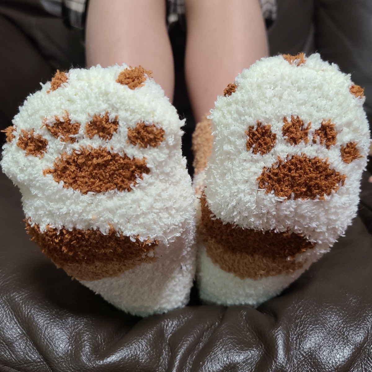 猫の足柄が可愛く裏側には肉球が付いていてキュートです