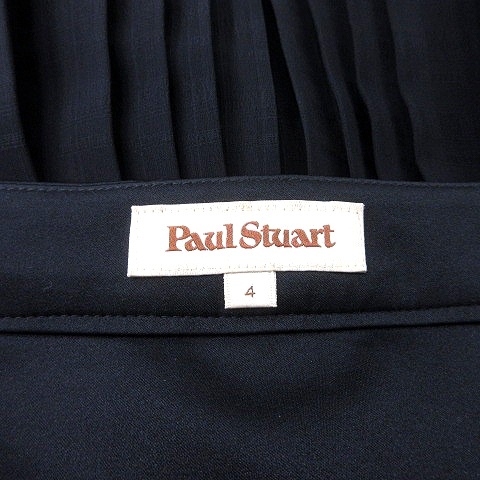 ポールスチュアート PAUL STUART プリーツスカート ひざ丈 チェック 4 S 紺 ネイビー /MN レディース