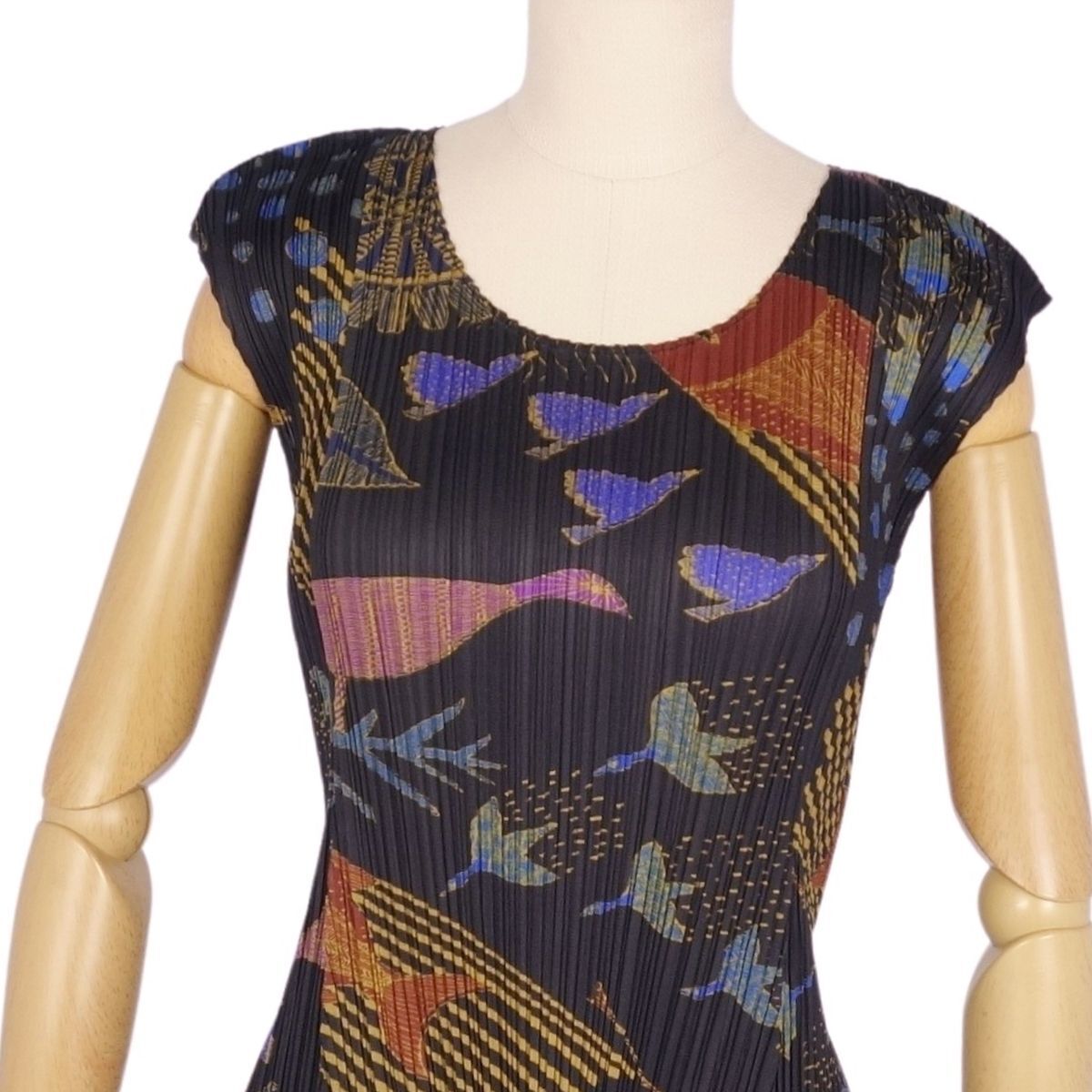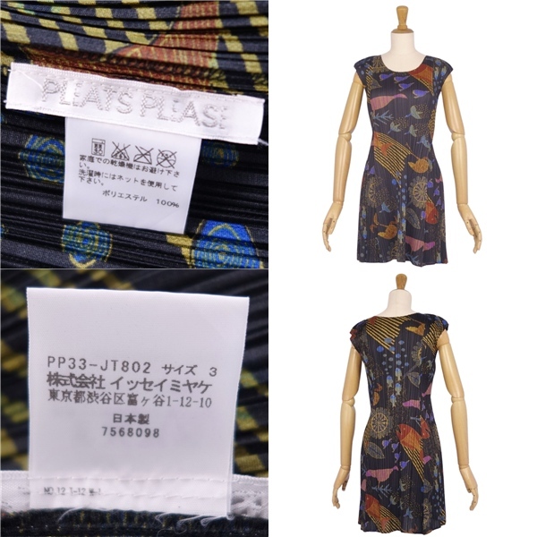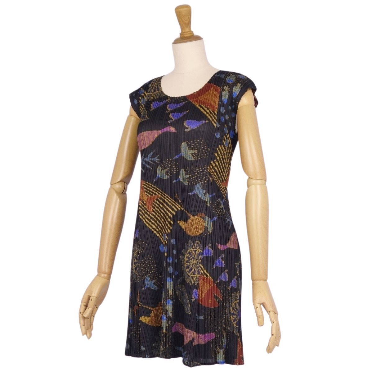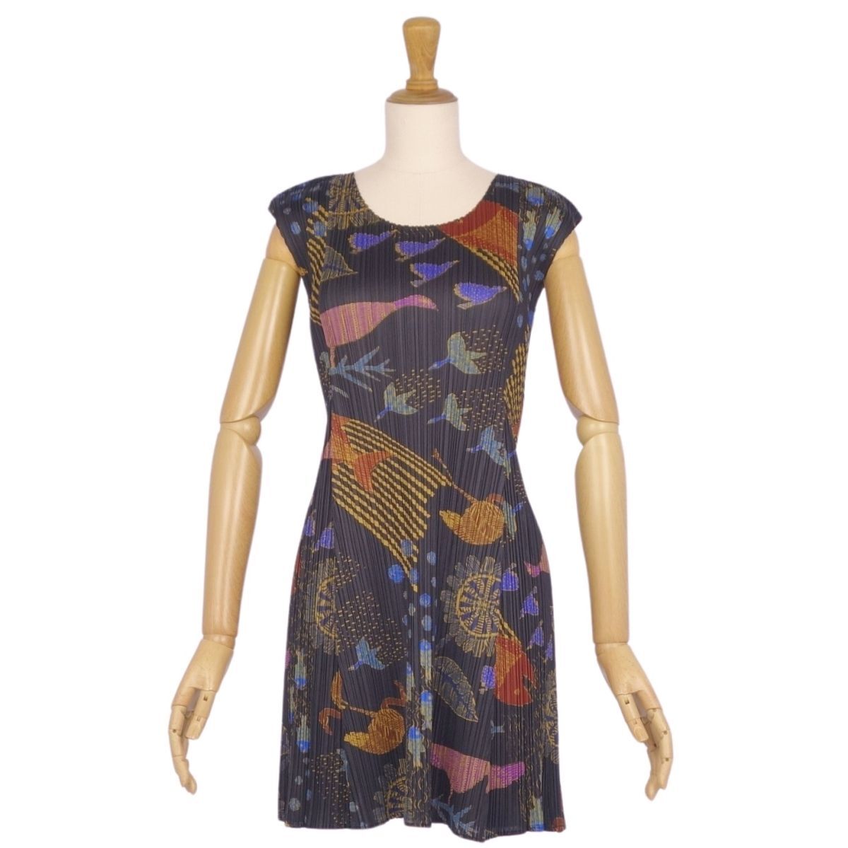 | 極美品 プリーツプリーズ イッセイミヤケ PLEATS PLEASE ワンピース ノースリーブ 総柄 プリーツ 3 マルチカラー |