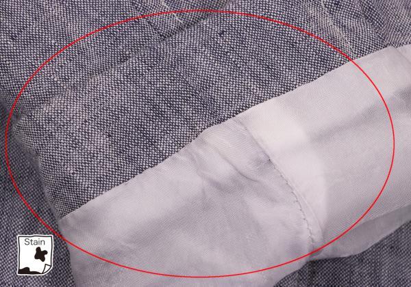 コンディション | 右袖裏に薄シミがあります(写真参照)。その他目立ったシミ、汚れ、ほつれ等なくいい状態です。クリーニング済み。 |