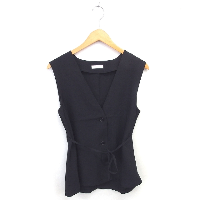 ドレスキップ DRESKIP ベスト 前開き ウエストリボン 薄手 M 黒 ブラック /TT レディース