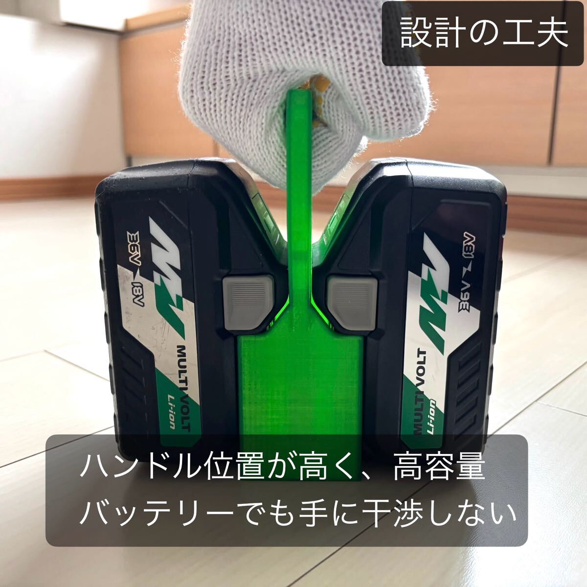 ハイコーキの充電式バッテリーを最大2個手提げ移動できる、ロック対応のバッテリーキャリアです。