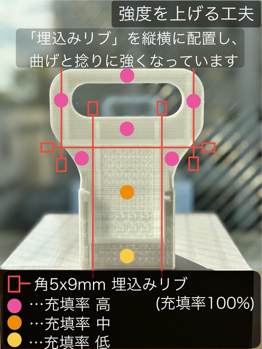 ・強度テストを行い、必要十分な強度があることを確認しています(ハンドル部は最低でも7.5 kgfの曲げ荷重に耐えます)。