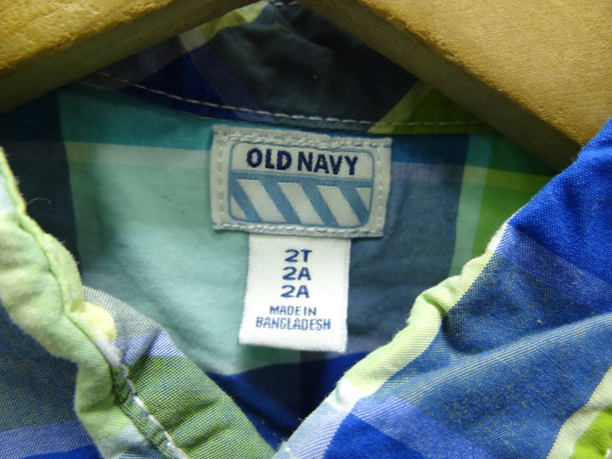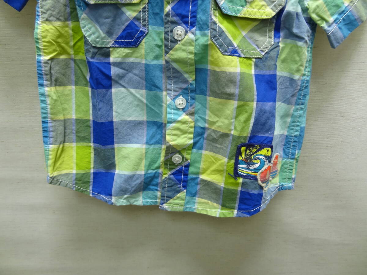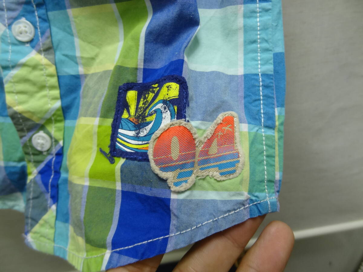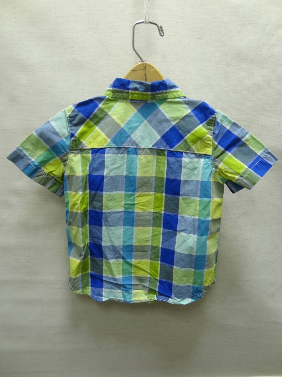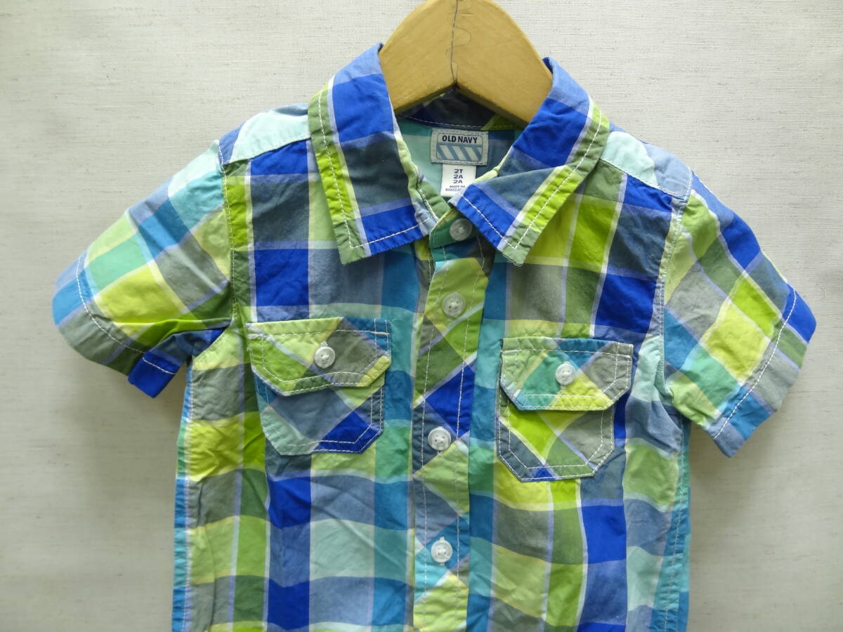 全国送料無料 オールドネイビー OLD NAVY 子供服キッズ男&女の子 サーファー風チェック柄 プリント 半袖 シャツ 95(2T)