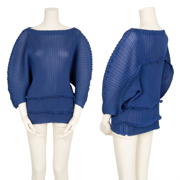 イッセイミヤケISSEY MIYAKE アウトシームデザインドルマンプリーツニットトップス 青2 |