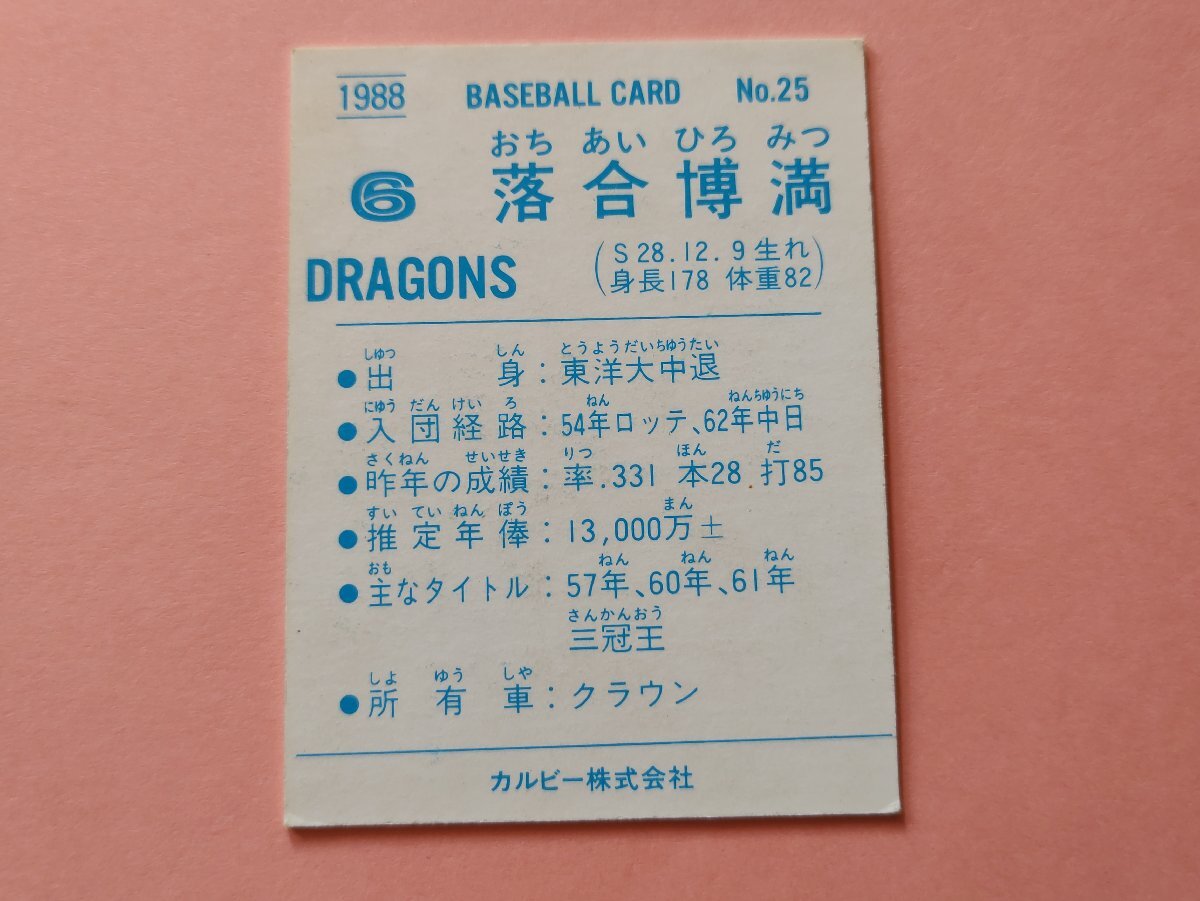 落合博満 中日ドラゴンズ '88プロ野球カード カルビー