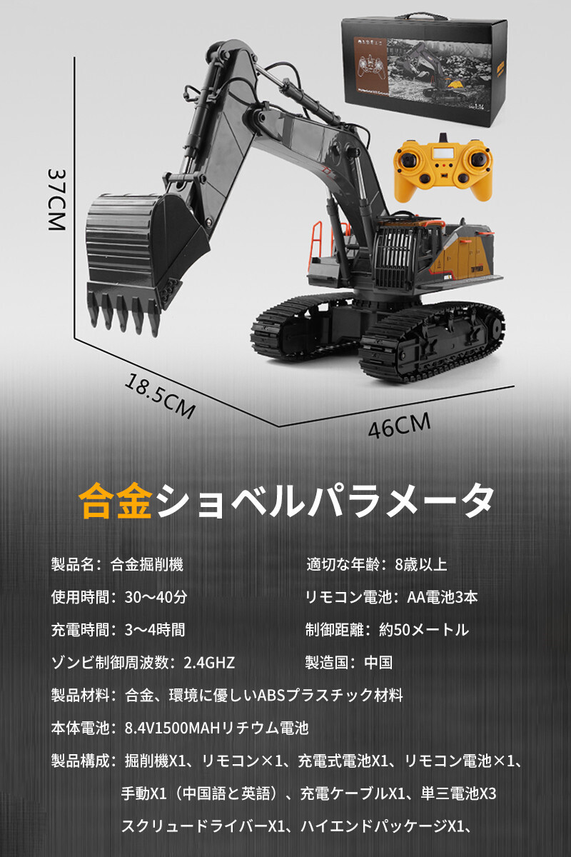114重機ラジコン 22CH パワーショベル 2.4G プロジェクト掘削機 建機 電池2本付属 ラジコン デラックスショベルカー ラジコンカー