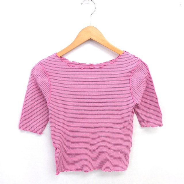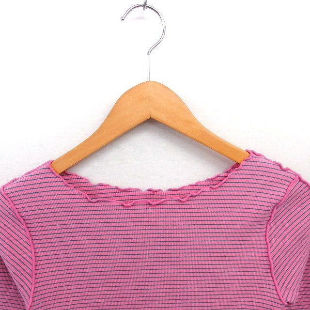 カスタネ Kastane カットソー ニット ボーダー ボートネック 半袖 F ピンク グリーン 緑 /TT レディース