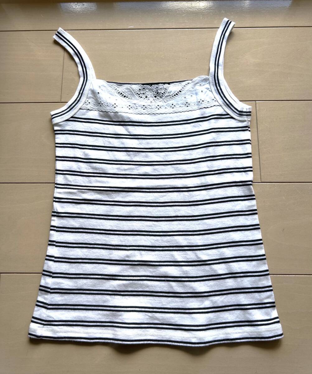 黒と白のボーダーで、フロントレースにはビジューが付いて女性らしく素敵です。