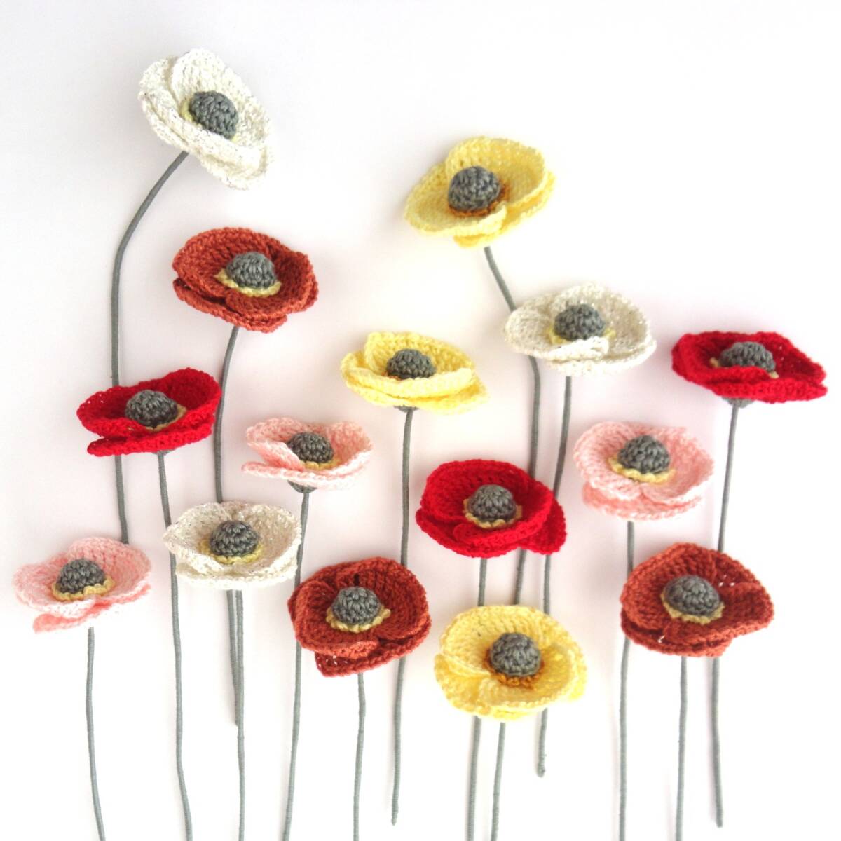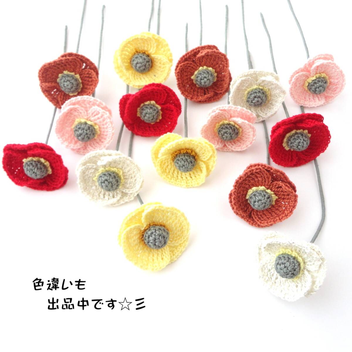 ずっと枯れないお花*ポピー*OR*ワイヤーフラワー*レース編み*ハンドメイド*b788