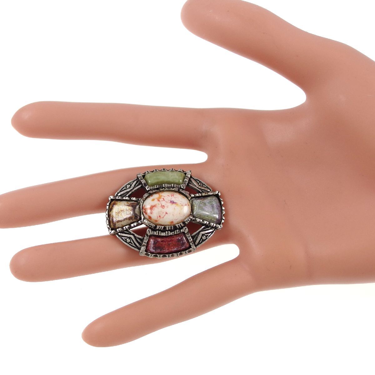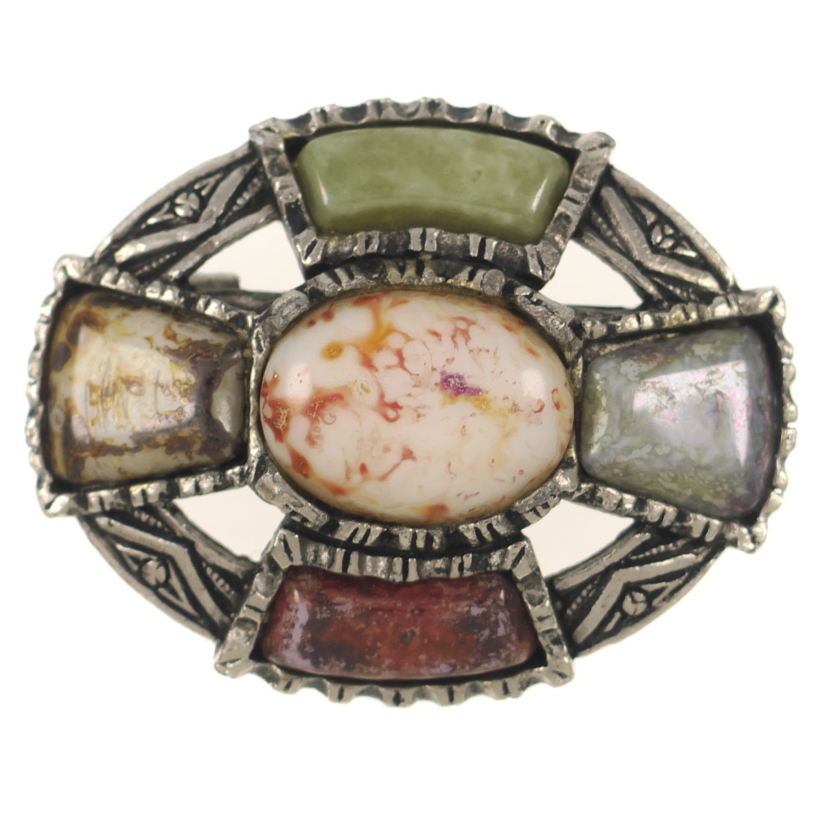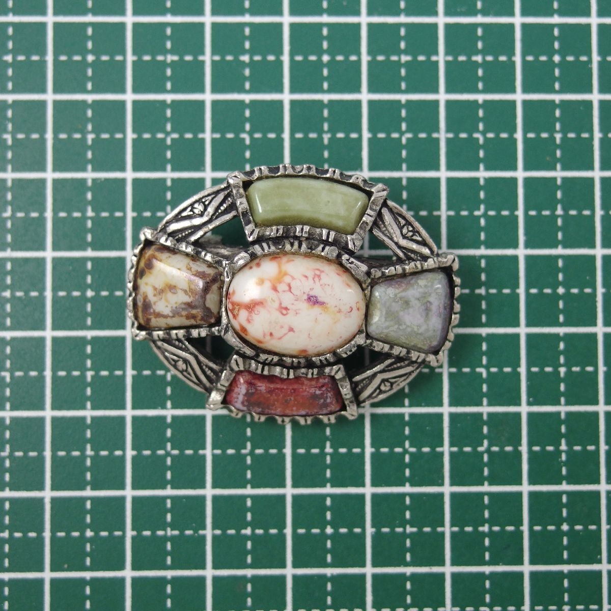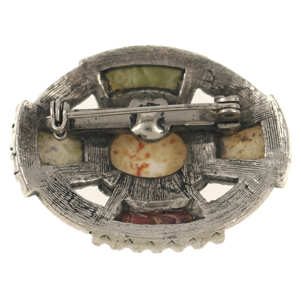 UK3689◆ ケルト十字 クロスモチーフ 5種のマルチカラーストーン 色石 ◆ ヴィンテージブローチ ◆ イギリス 英国