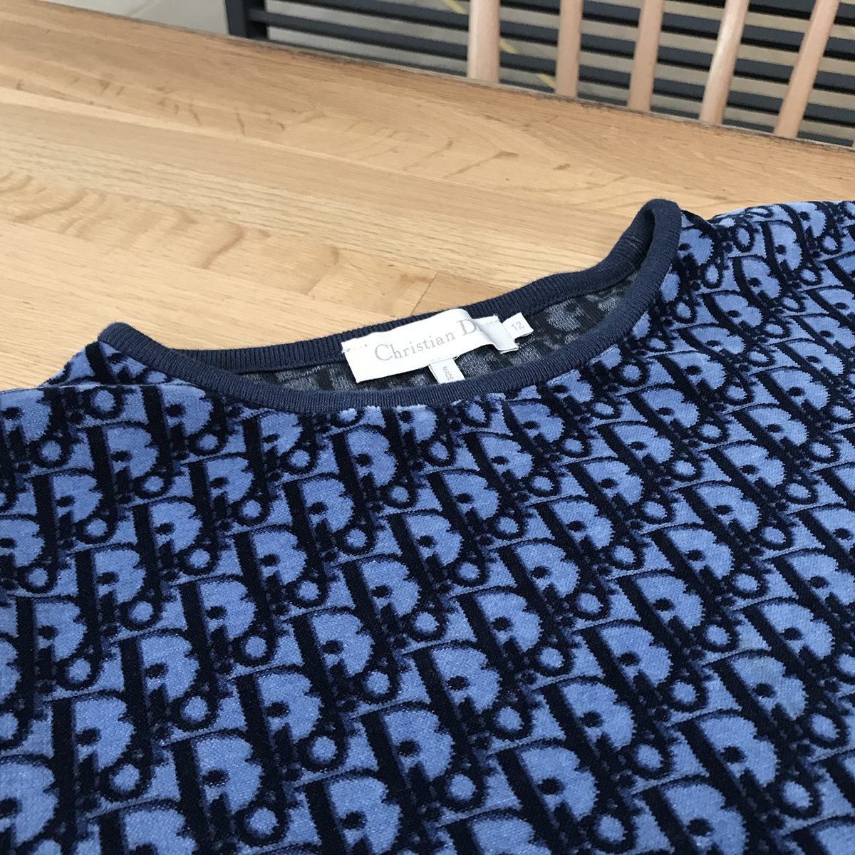 【超美品】ディオール オブリーク キッズ Aラインドレス チュニック ネイビー 9HBM13DRSO #12 紺 ロゴ 13768