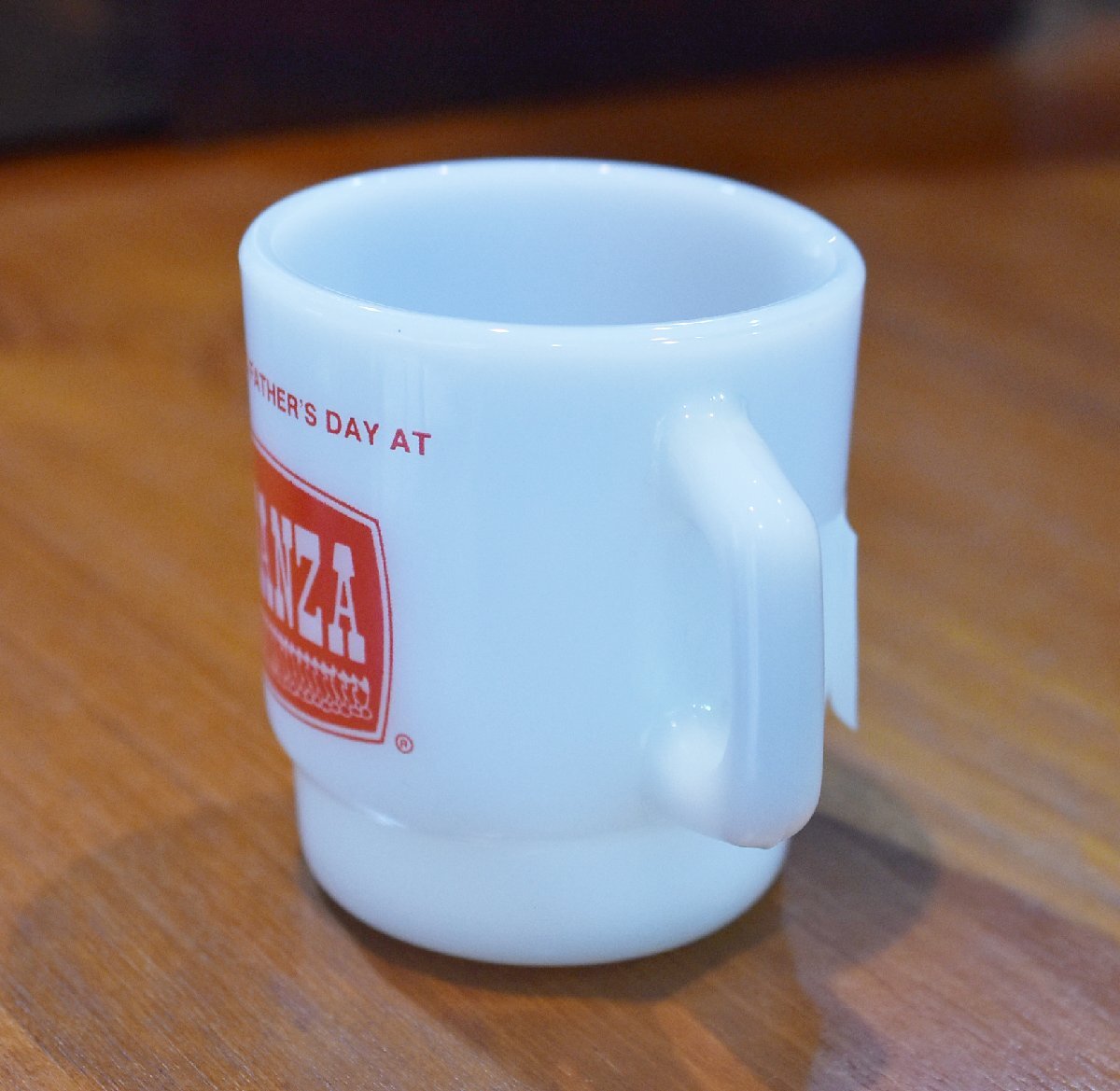 ビンテージ Fire King ファイヤーキング BONANZA 父の日 スタッキングマグ プリントマグ ミルクガラス マグカップ DJ0567-7-DJ06