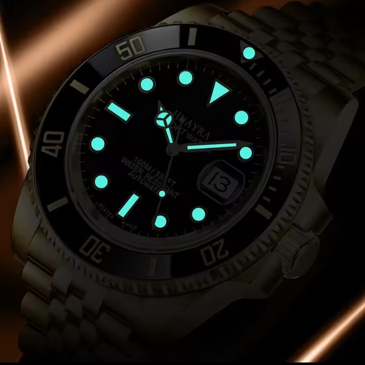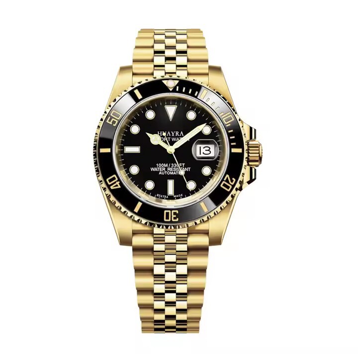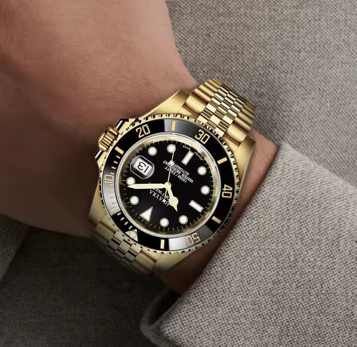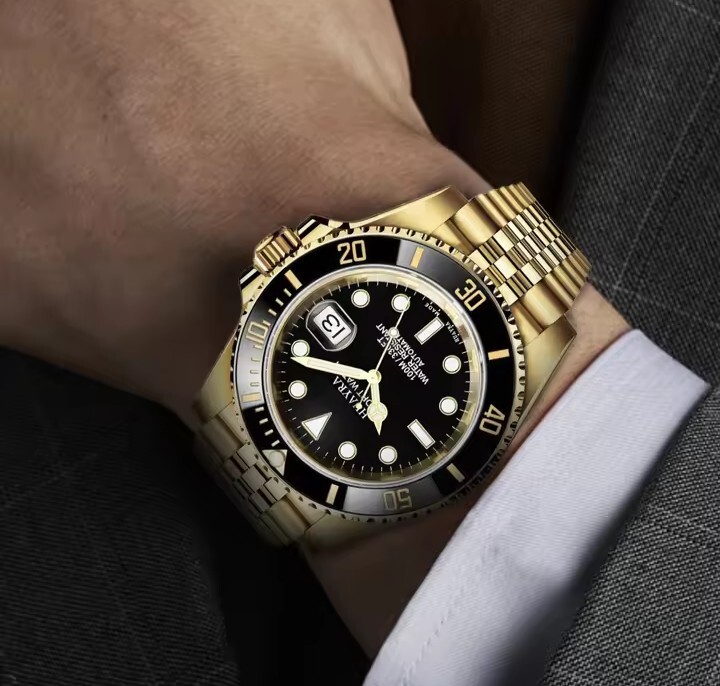 【新品未使用】 自動巻腕時計 機械式ゴールドブラック文字盤ビジネスウォッチ防水 オートマチック