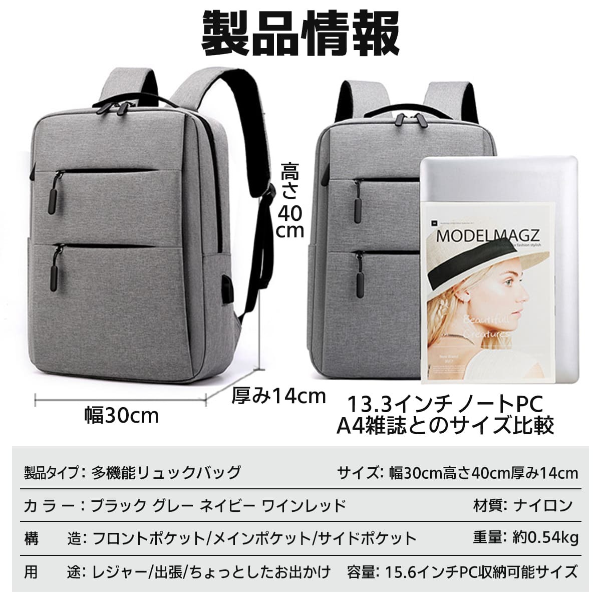 シンプルでスマートなデザインだから、通勤・通学、旅行まで幅広く活躍します。