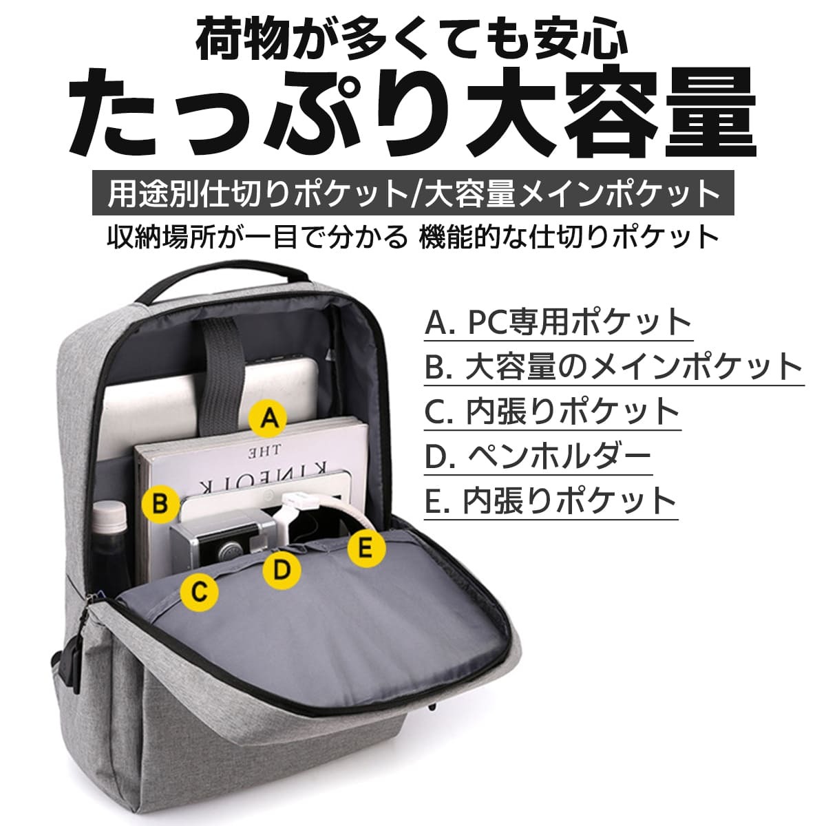 メイン収納は15.6インチまでのノートPCもすっぽり入る大容量!