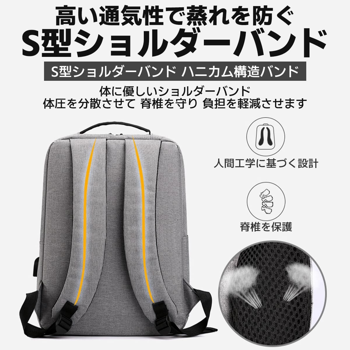 背面はクッション素材を採用しており、快適な背負い心地を実現しました。