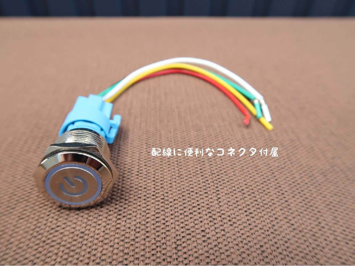 スイッチはブルーのLEDが装備されており、取付時の結線により点灯させることが可能です。(結線図付属)