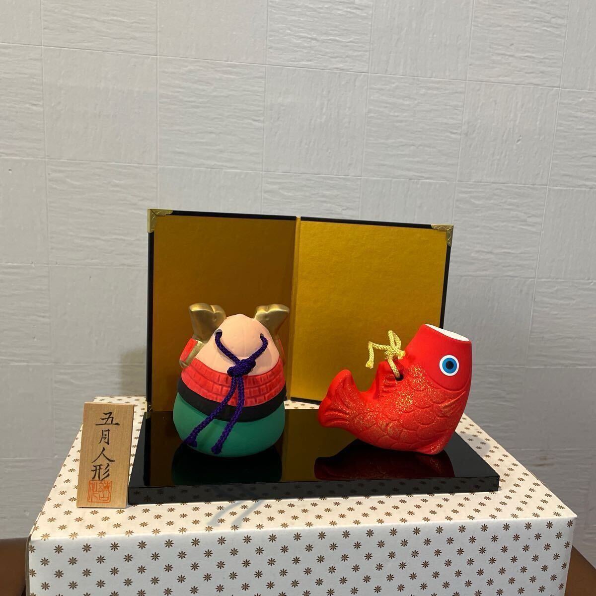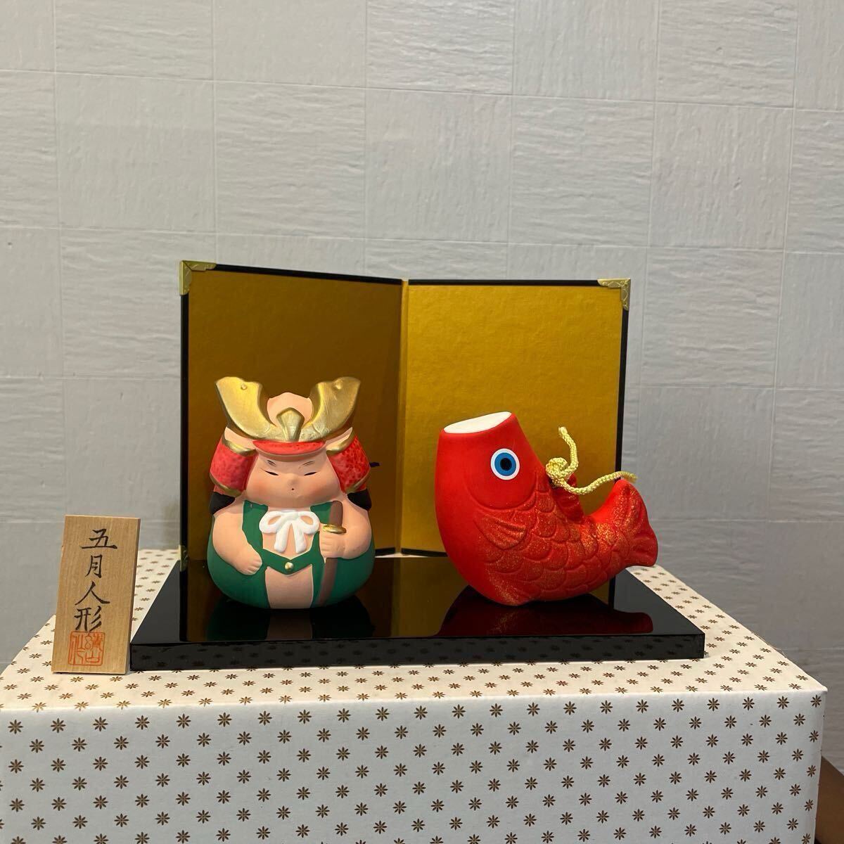 数多いオークションの中からこちらに訪れてくださいましてありがとうございます。 手軽に飾れて楽しい雰囲気をかもし出す、かわいい陶器の鯉のぼりと五月人形です。
