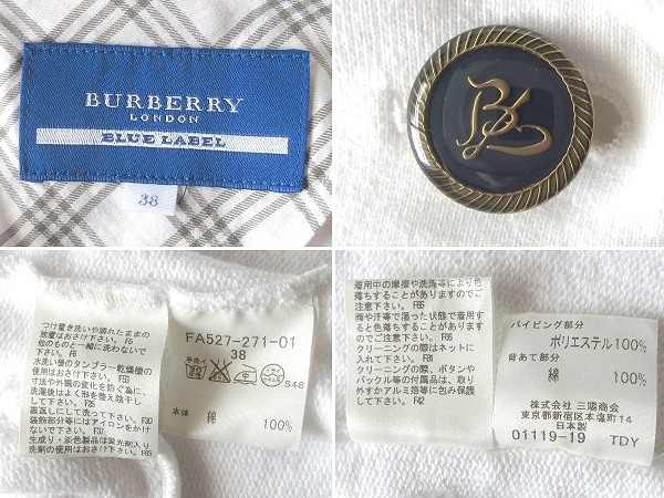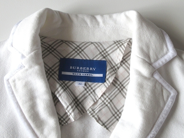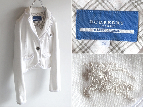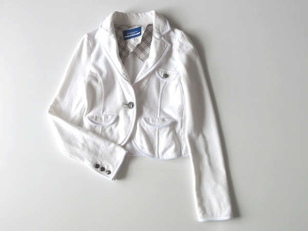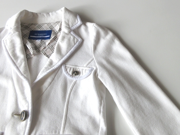 BURBERRY LONDON BLUE LABEL バーバリーブルーレーベル ホースロゴ刺繍 ノバチェック裏地 スウェット 1Bテーラードジャケット 38 ホワイト