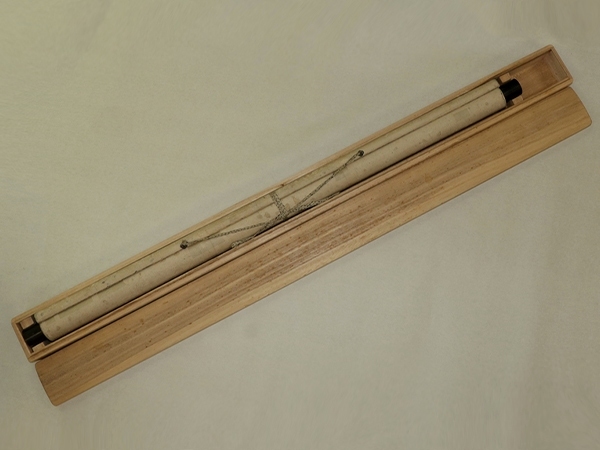 雪舟 せっしゅう(1420-1506) 室町後期の画僧。備中の人。諱は等楊。 京都の相国寺に入り、画技を周文に学んだ。山口に画房、雲谷庵を開設。 渡明を挟んで宋元画を広く学び、のち大分に天開図画楼を開設。 自然に対する深い観照のもとに個性豊かな水墨山水画様式を完成し、後世に多大な影響を与えた。 本紙は、染み、汚れ、強い折れ、皺、虫食い痕、生地剥れ痕、擦れ、ヤケがあります。 表装は、染み、汚れ、折れ、皺、虫食い、破れ、ほつれ、修理痕、 軸先に汚れと擦れ傷があり、巻紐が短いです。 【サイズ】 作品 横約66.5cm×縦約42.5cm 表装 横約81cm×縦約131cm |