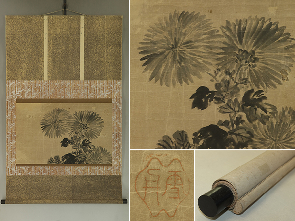 | №2502004【模写】雪舟【水墨花卉図】◆紙本◆合箱◆掛軸 | |