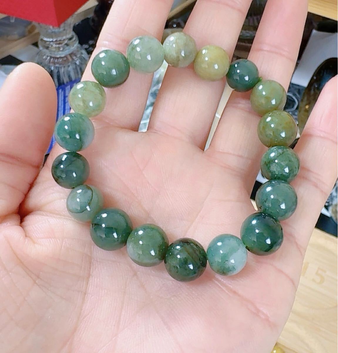 天然翡翠には一点一点に個性があります,天然石特有のヒビ、欠け、内包物などある場合がございます.