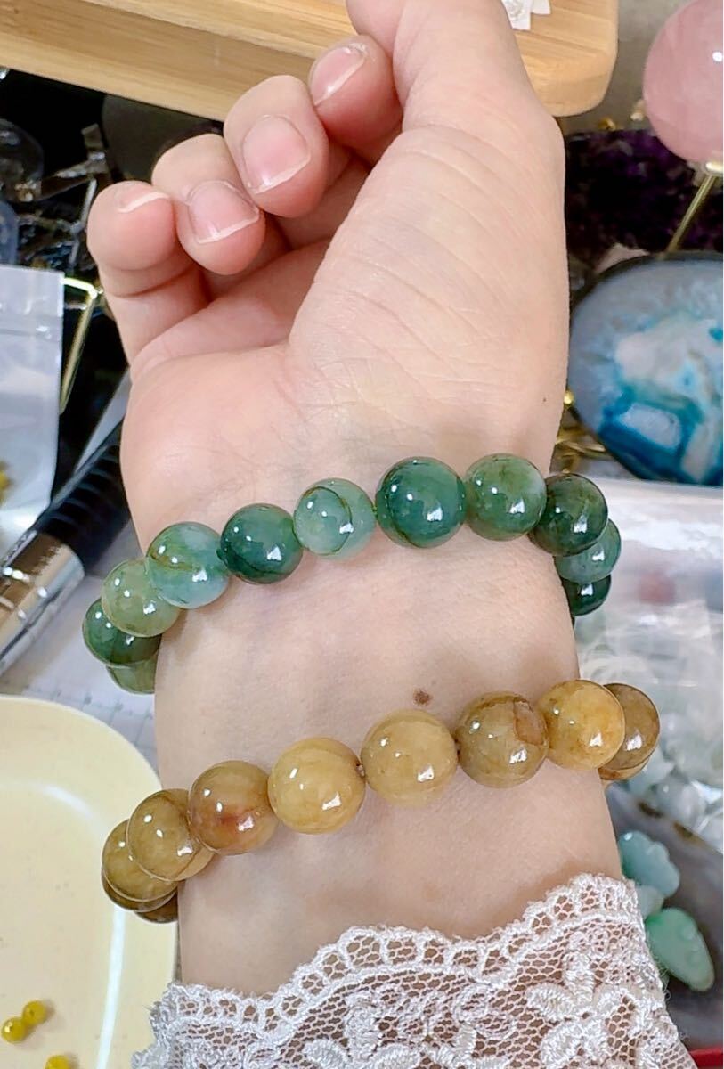 R2-0917天然本翡翠《本物保証》 ミャンマー産天然翡翠 ブレスレット14.5/16cm *2連分 天然石10mm一点物 希少 縁起物 お守り パワーストーン