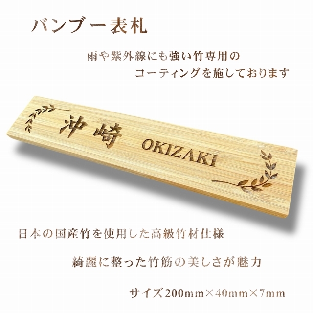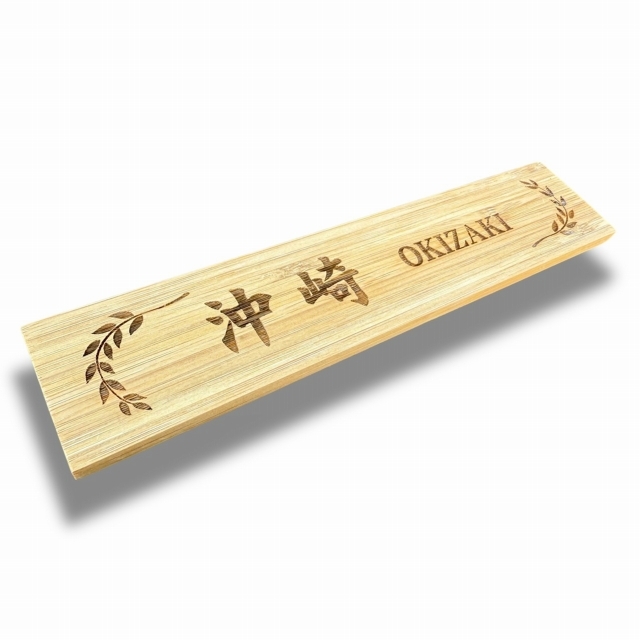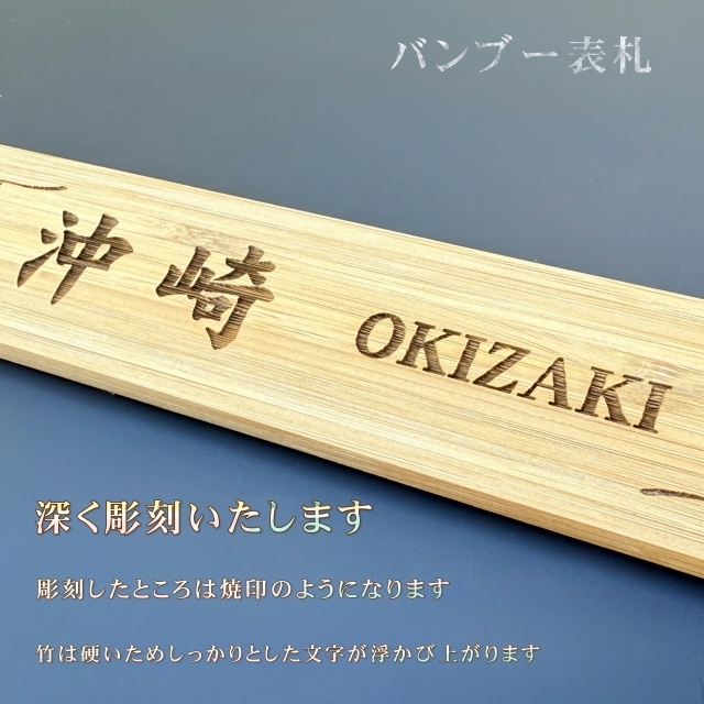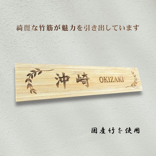竹製の表札は、和洋どちらのスタイルにも調和するモダンなデザインが特徴です。