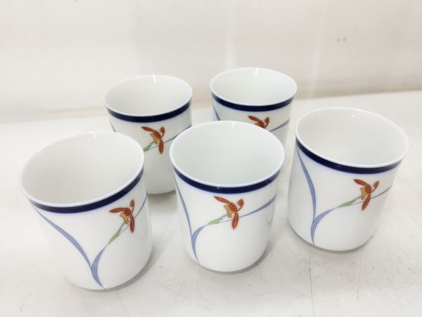 サ/ 香蘭社 オーキッドレース 湯呑 5客揃 茶器 湯のみ 和食器 /HY-0768