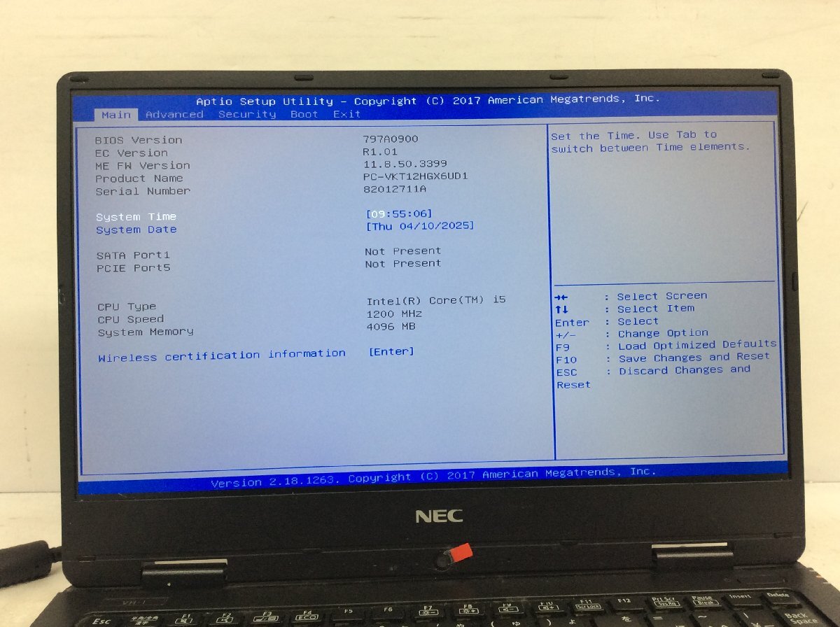 ジャンク/ NEC PC-VKT12HGX6UD1 Intel Core i5-7Y54 メモリ4.1GB ストレージ無し 【K11993】