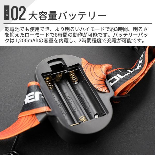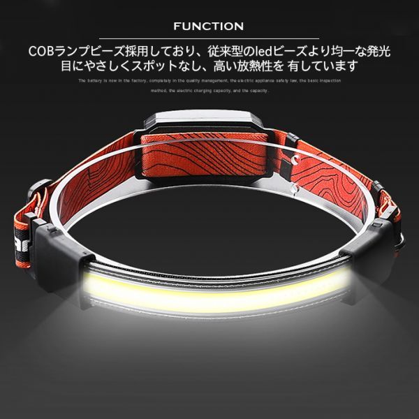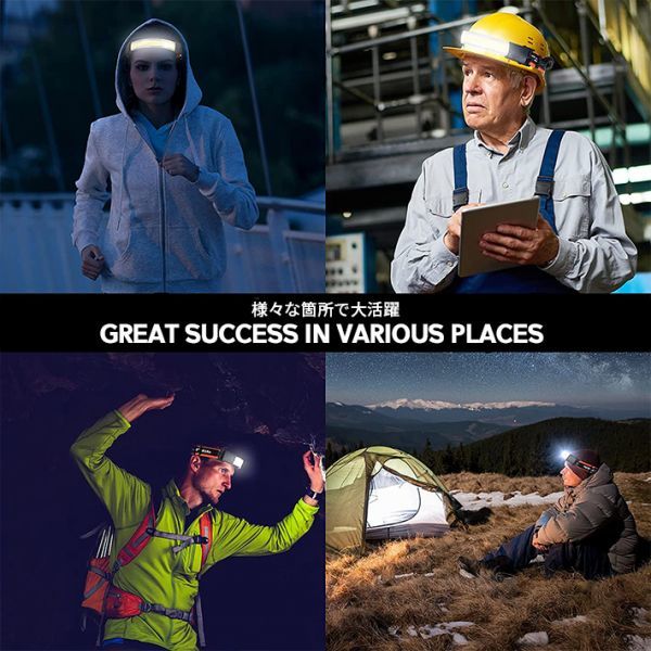 フルエリア照明:新しい到着ヘッドランプは、市場で唯一の210度広角LEDヘッドランプです。専用設計の曲面COB最大350LMのCOBがワイドにムラなく照射!LEDライトはフレキシブルストリップ上に配置されて210度の連続照明。これにより暗闇の中でも昼間のような周辺視野を再現できます。 広域照明により、頭を動かして目的の領域を照らす必要がなくなります。