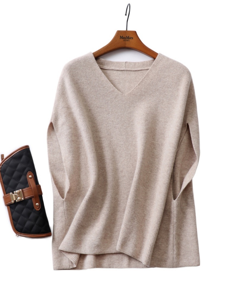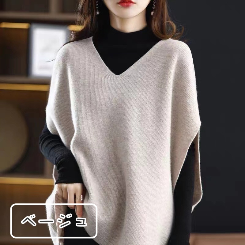 送料無料★即納 新品 ゆったり ドルマン風 Vネック ニットベスト 重ね着 無地 ノースリーブ 体型隠し★ベージュ | ||||
