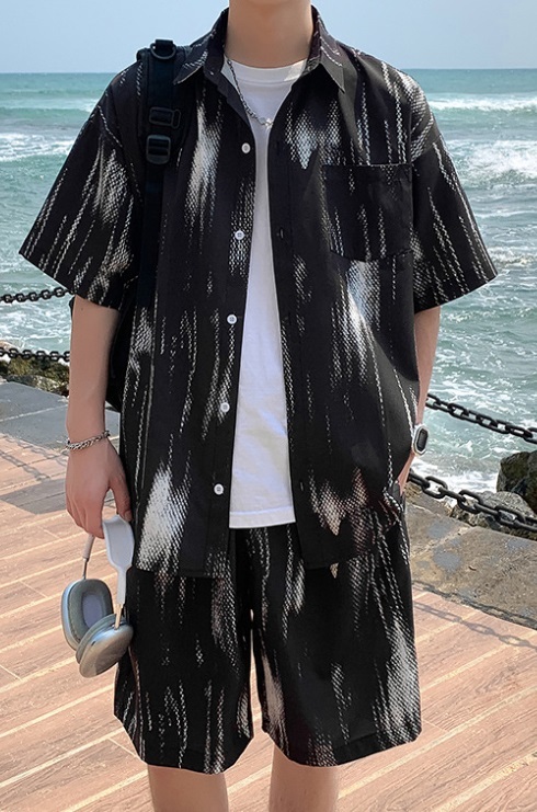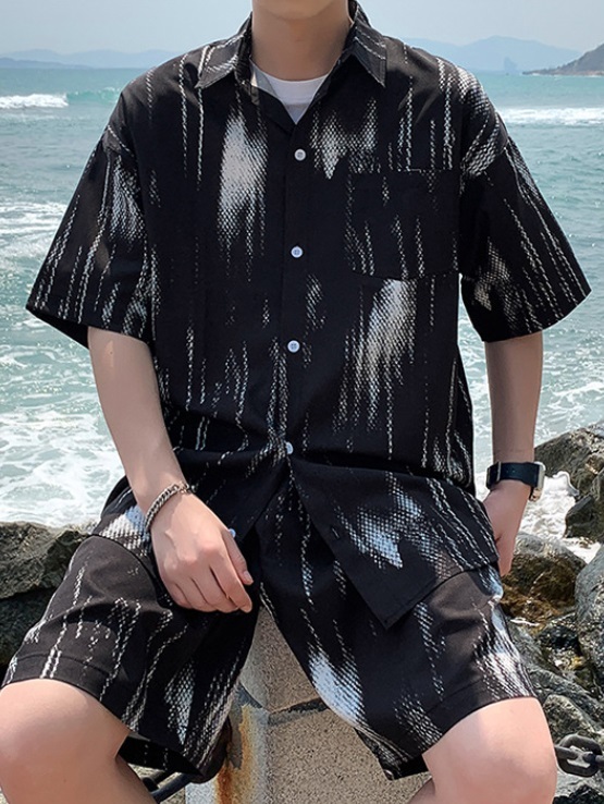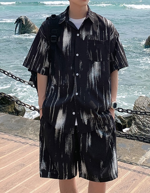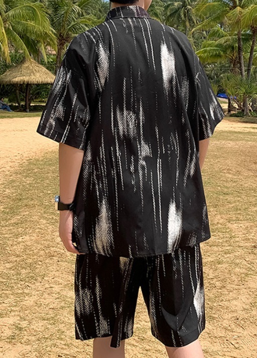 新販売 上下セット アップ アロハシャツ メンズ 浴衣 短パンツ 部屋着 ルームウェア 夏祭り リゾート 黒/XL