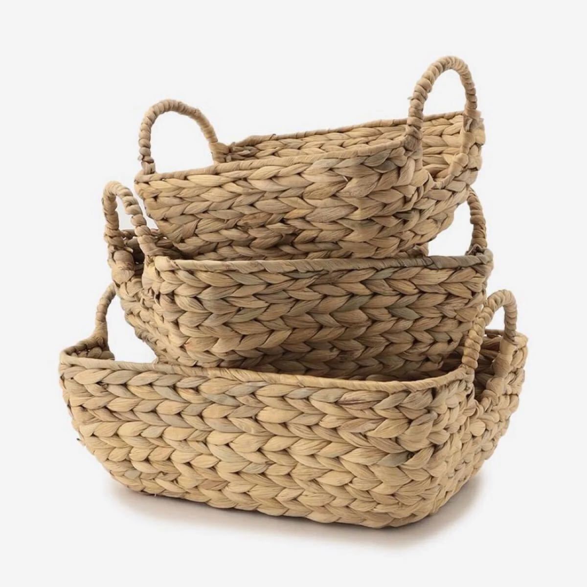 テイストアジアン・エスニック・モロッコ風,ナチュラル,北欧モダン,シャビーシック,北欧,カントリー風,コースタル・海岸風,アンティーク・クラシック,シンプル・ベーシック・籐・ラタンウォーターヒヤシンス 収納 バスケット かご カゴ 舟形 ボートバスケット・ハンドル付き・編み・収納雑貨・収納ボックス・天然素材・ナチュラル