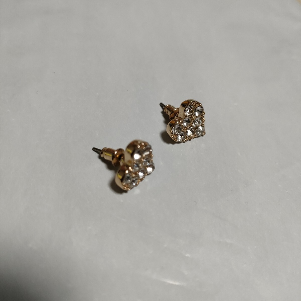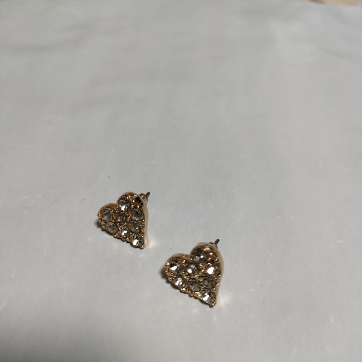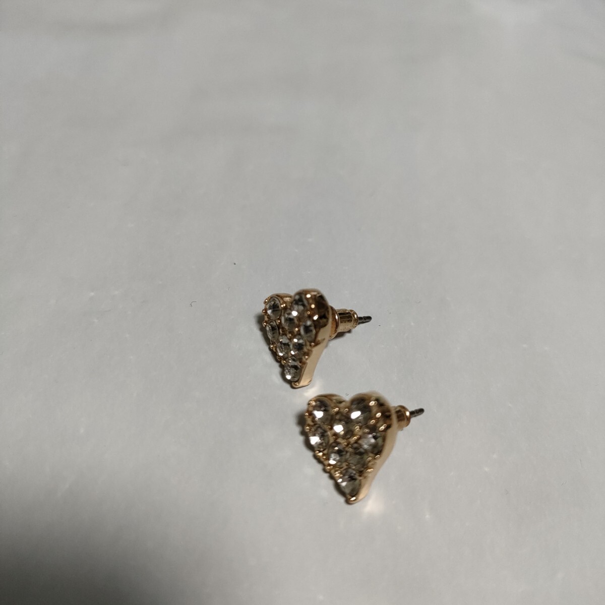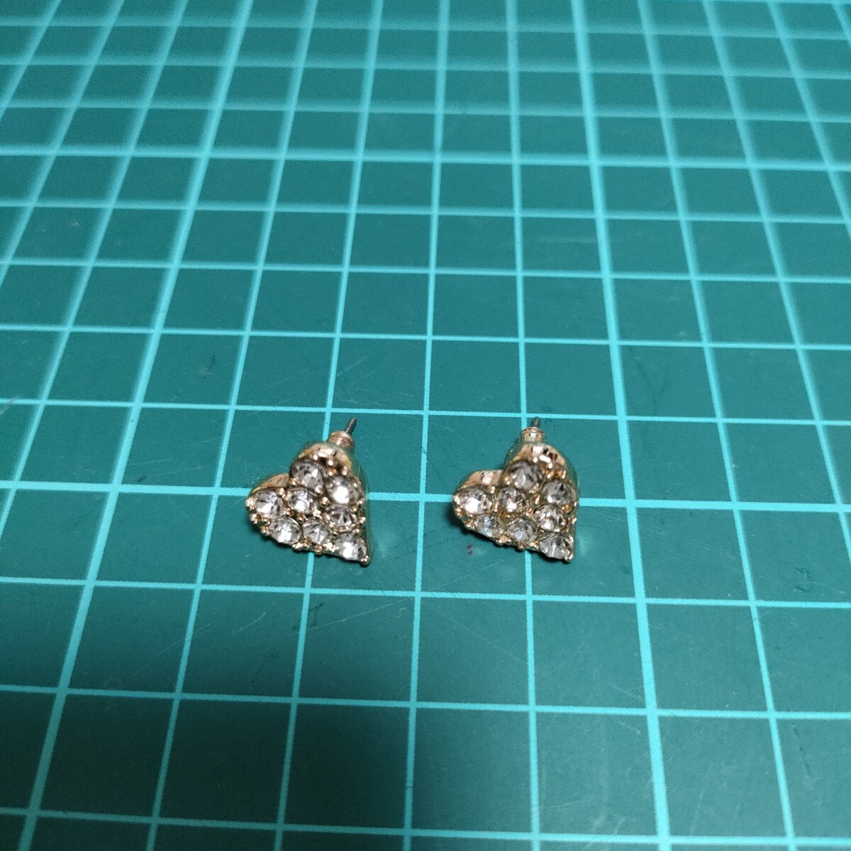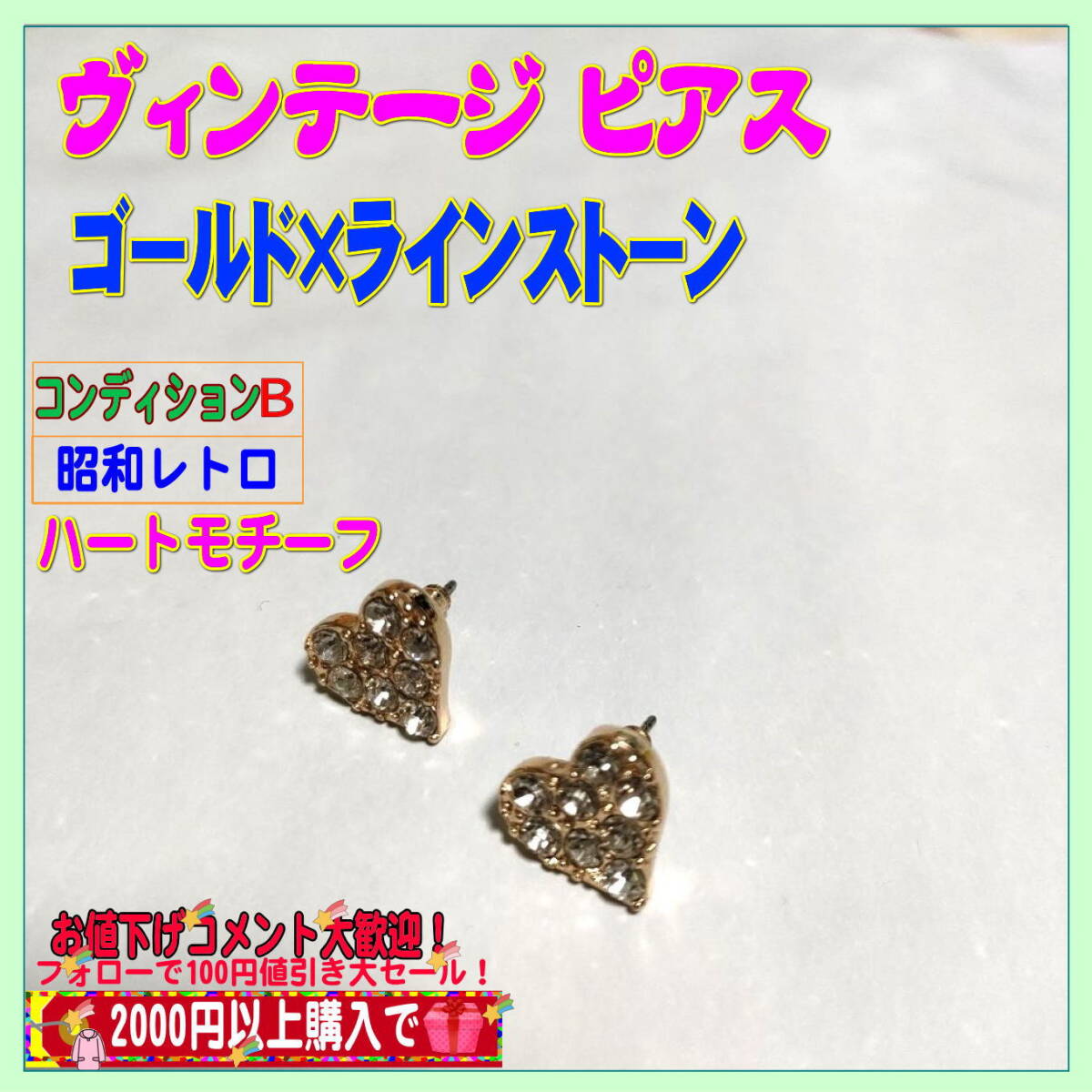 中古 ヴィンテージ ピアス ゴールド×ラインストーン ハートモチーフ 送料無料 匿名配送 昭和レトロな雰囲気