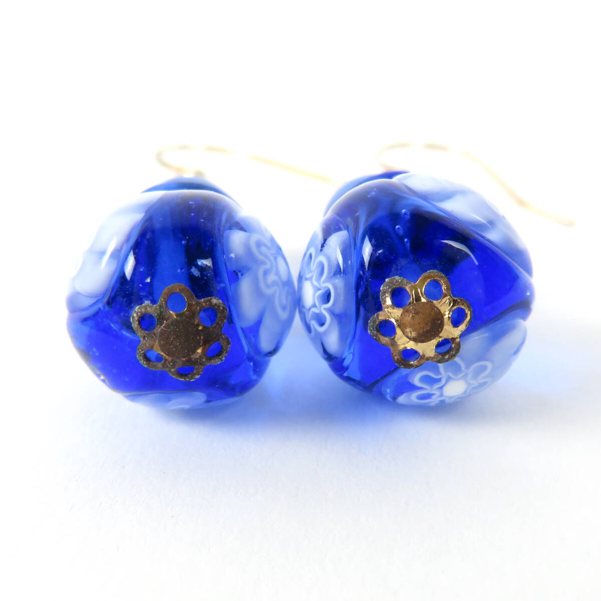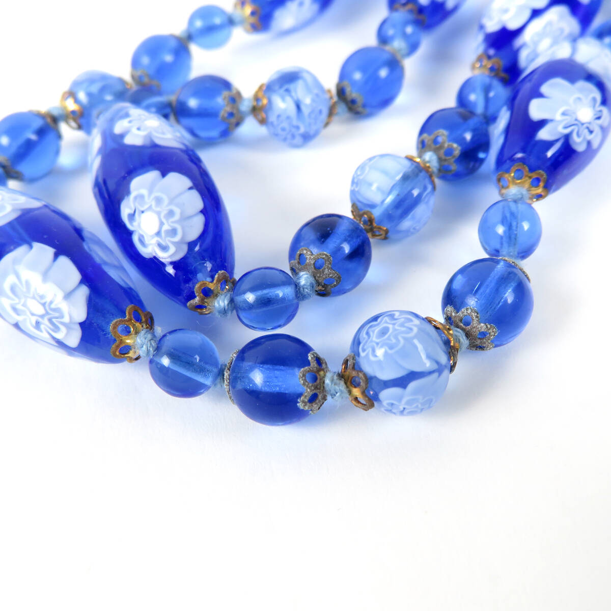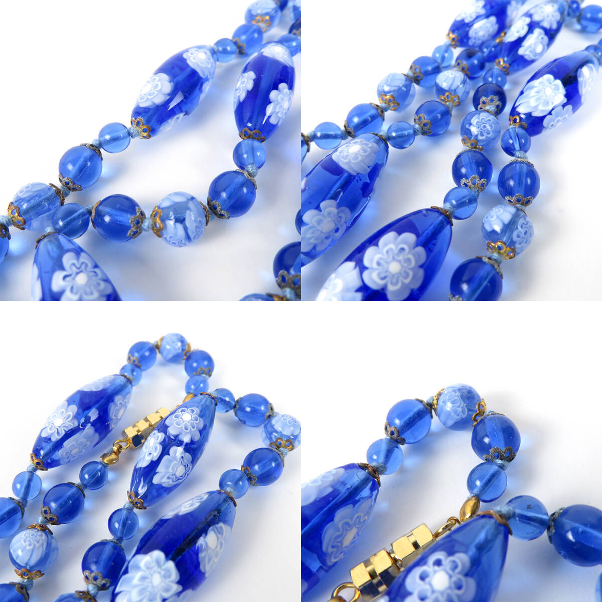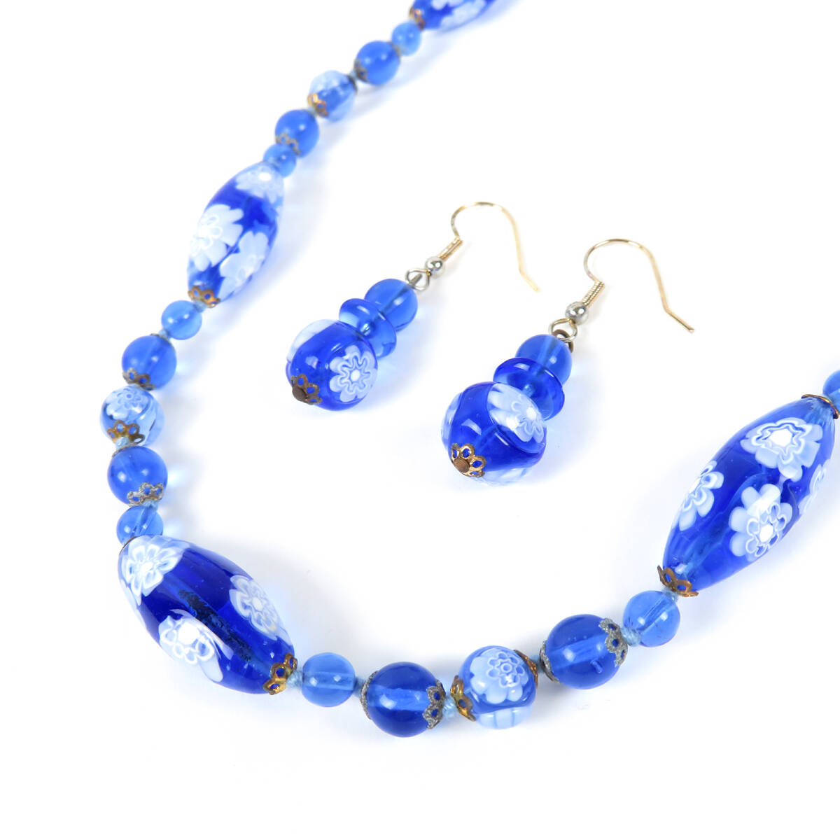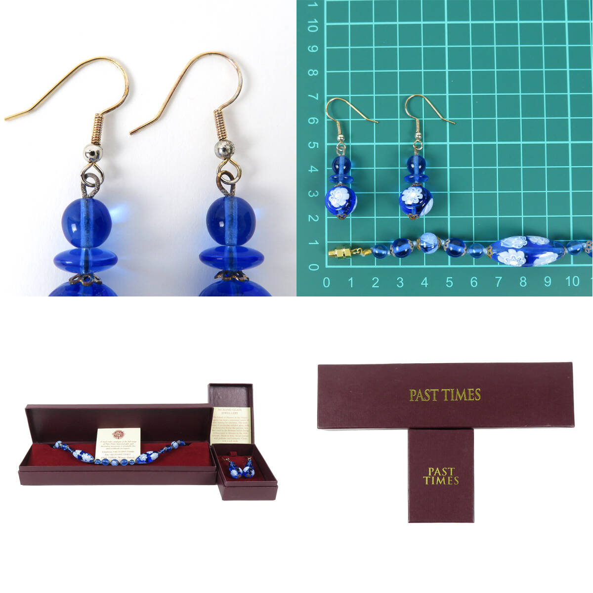 PAST TIMES MURANO GLASS ムラーノガラス フラワー 花柄 ネックレス ピアス セット ブルー |