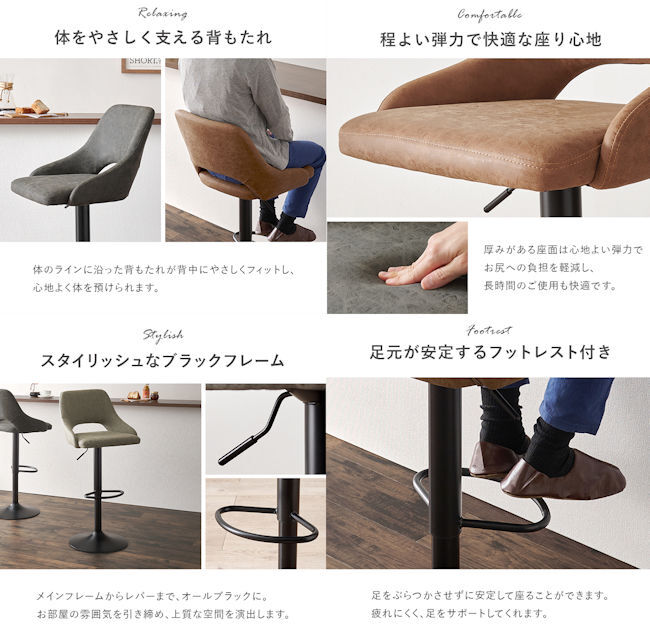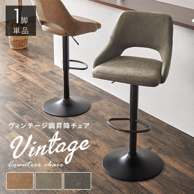 ヴィンテージ調ガス圧昇降式バーチェア カウンターチェア ダイニングチェア 椅子(525)