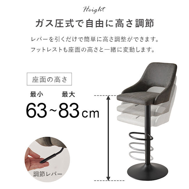 ◆ガス圧式で自由に高さ調節可能(座面高さ63~83cm)