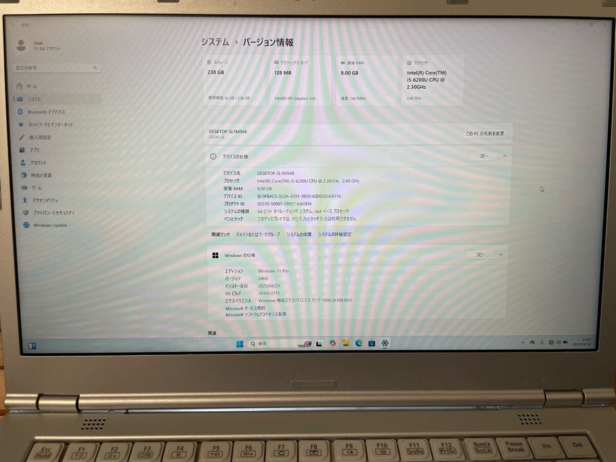・OS:Windows11Pro(デジタルライセンス認証済み)