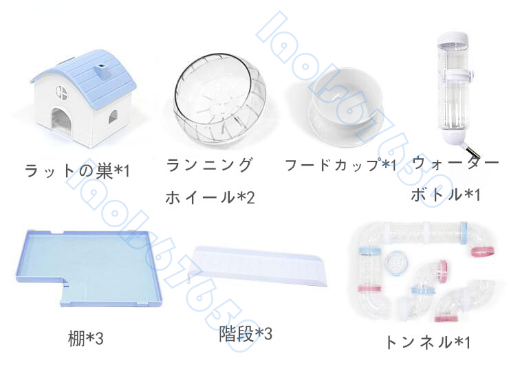 付属品:巣x1 輪x2 食器x1 水樽x1 層板x3 階段x3 トンネルx1