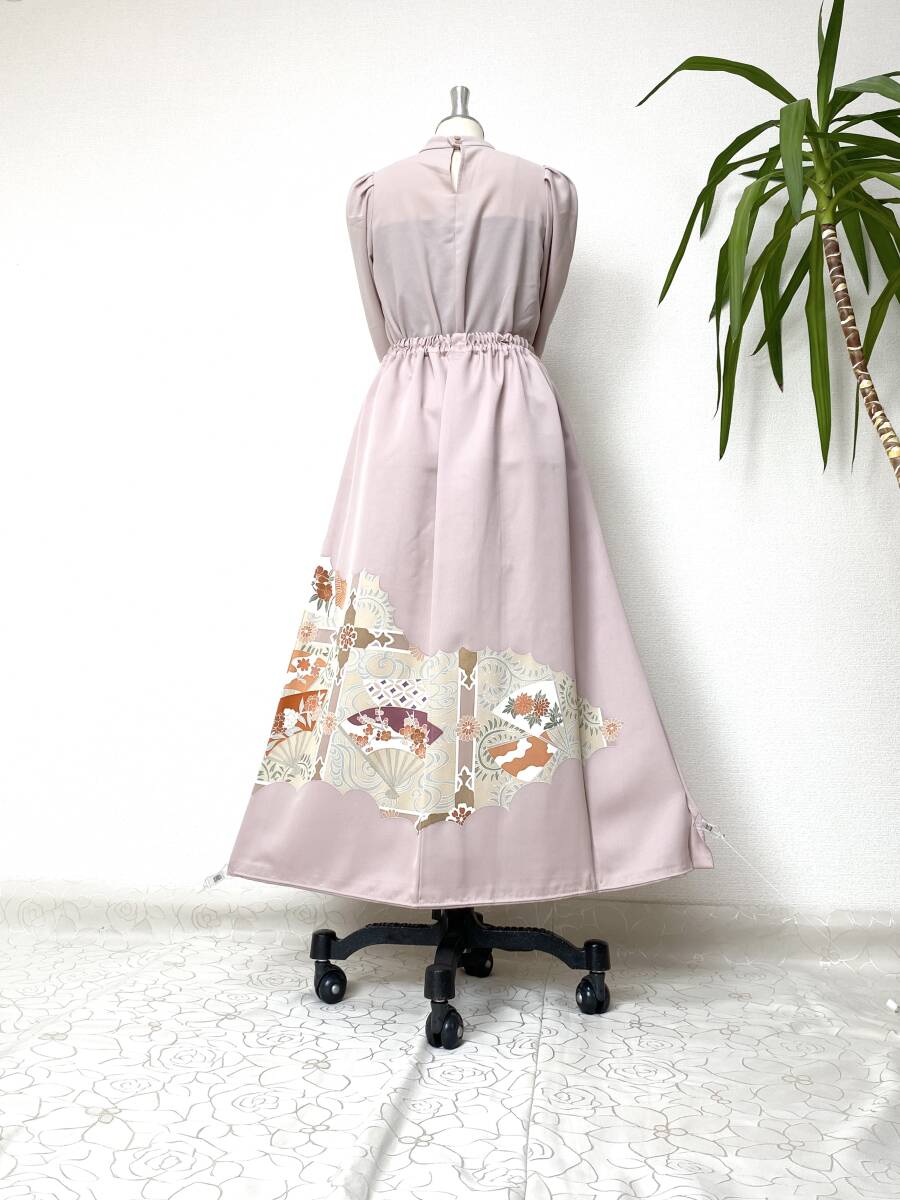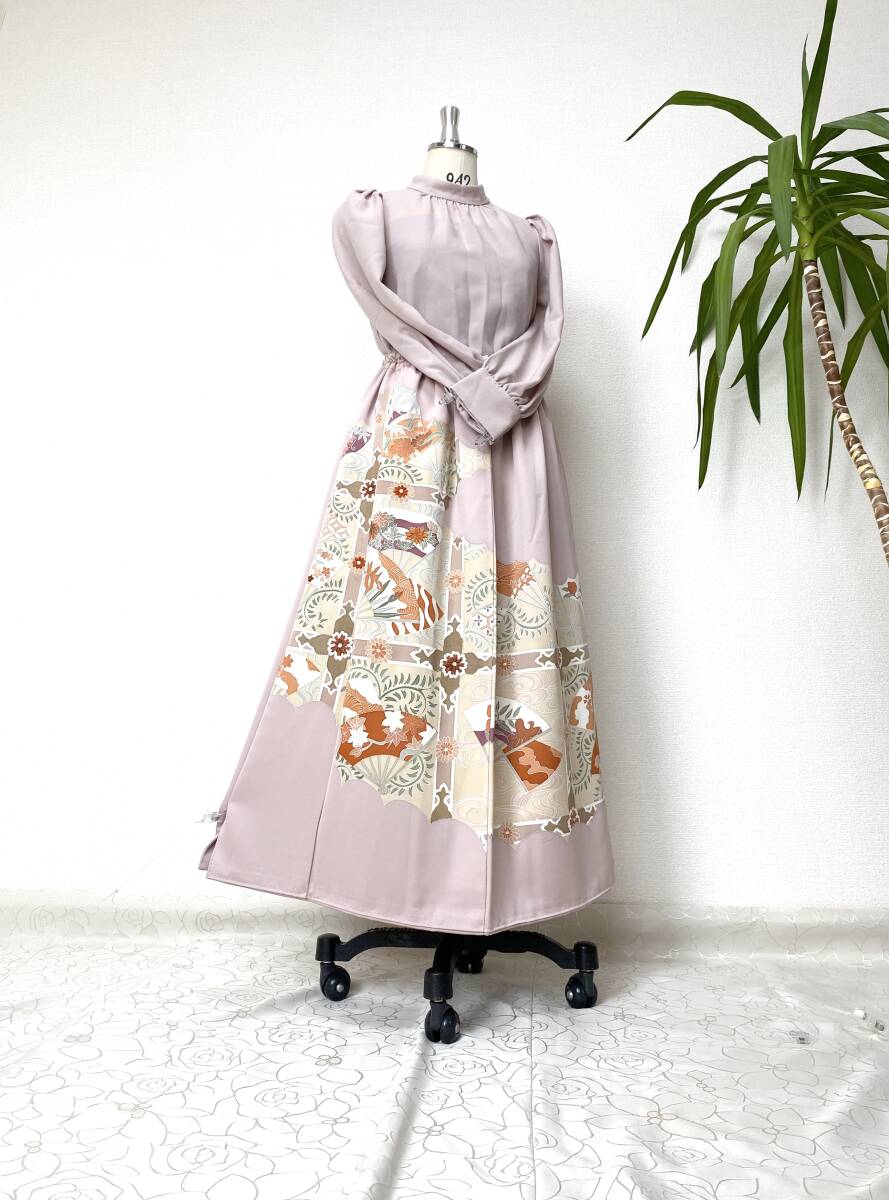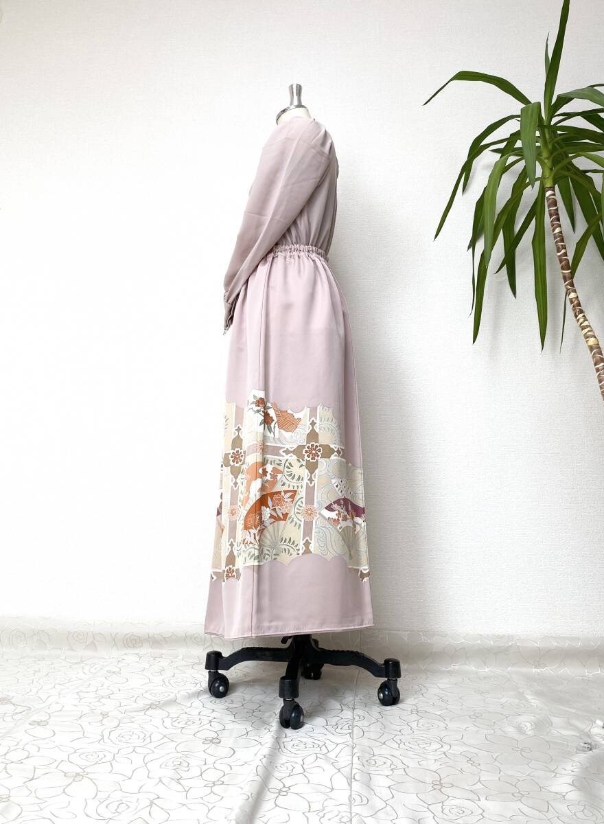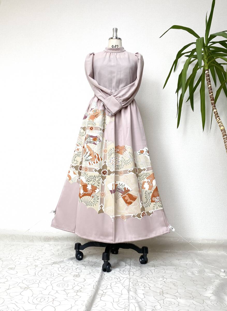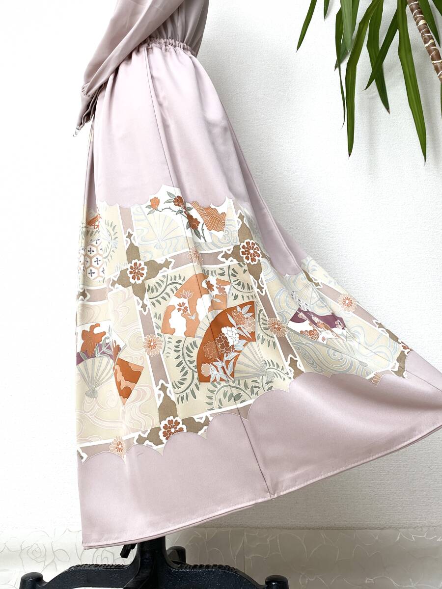 着物をリメイクして作製したウエストゴムロングドレススカートフリーサイズです